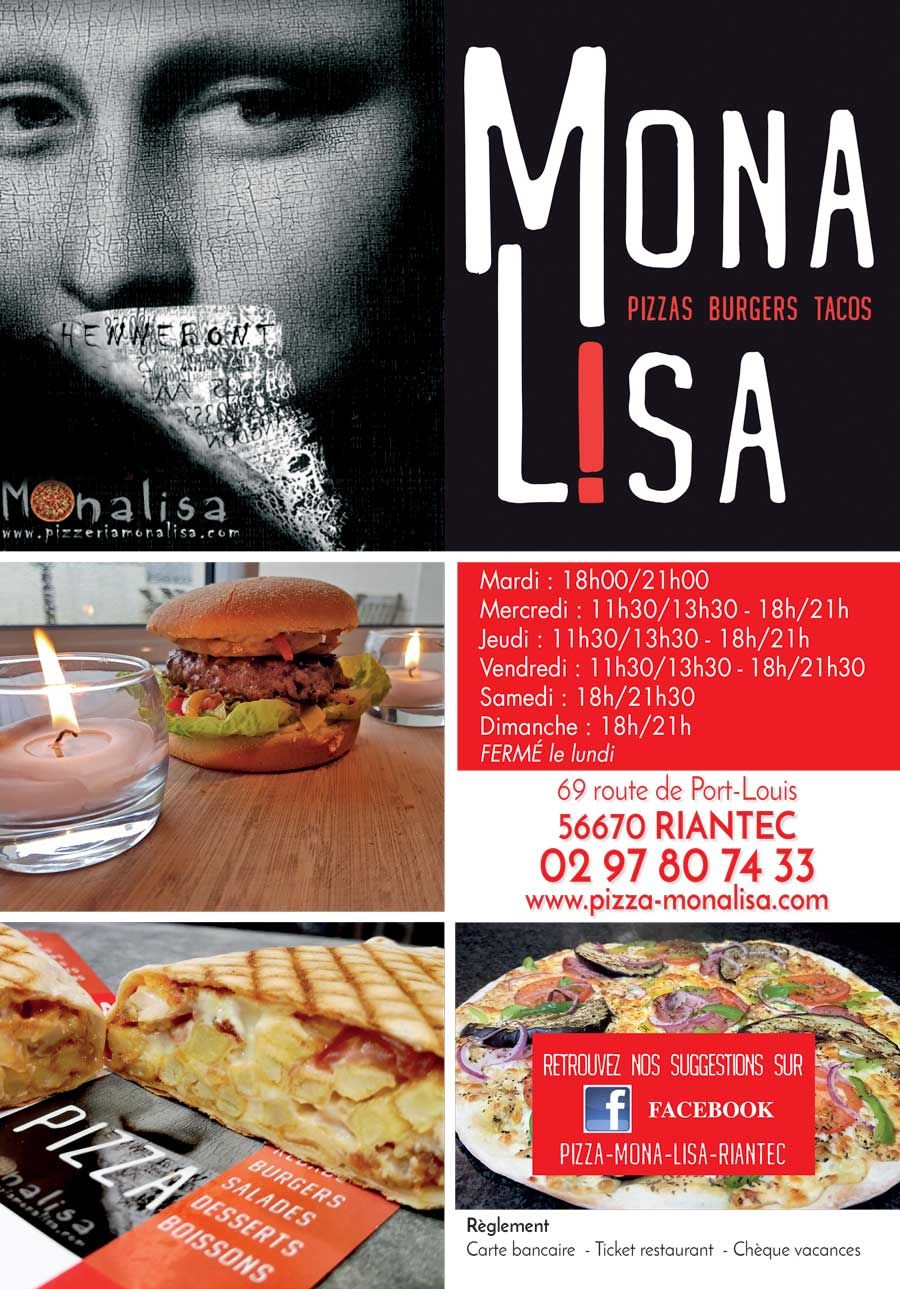 La carte de la Pizzeria Mona Lisa Riantec